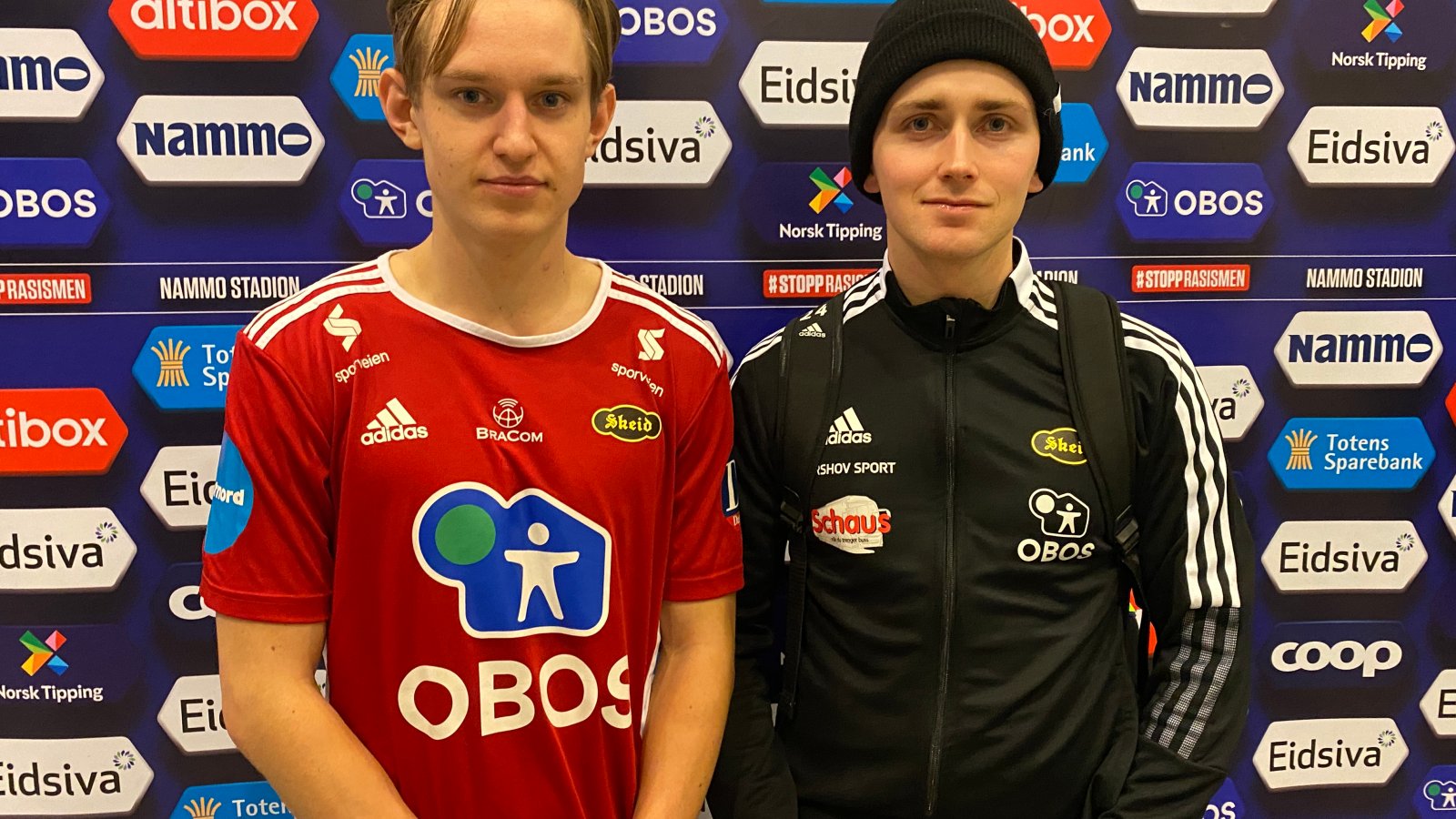 Vi tar ledelsen to ganger i treningskampen mot Raufoss, men det ender 2-2. Ulrich Ness (t.h.) og Emil Tjøstheim (t.v.) scorer våre mål. Les guttas kommentarer i saken, og se Gard Holmes oppsummering!