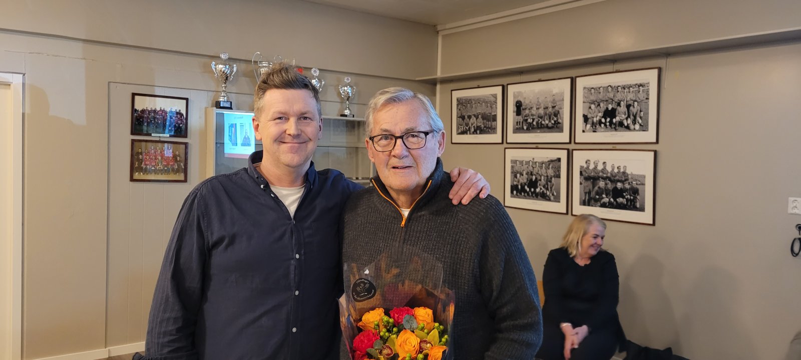 Trond Bjerk og Thorbjørn Haugen har i år begge vært medlemmer av Skeid i hele 70 år. Trond var tilstede og fikk en oppmerksomhet av styreleder Jørgen W. Bjerke. Vi takker begge for livsvarig engasjement i klubben sin.