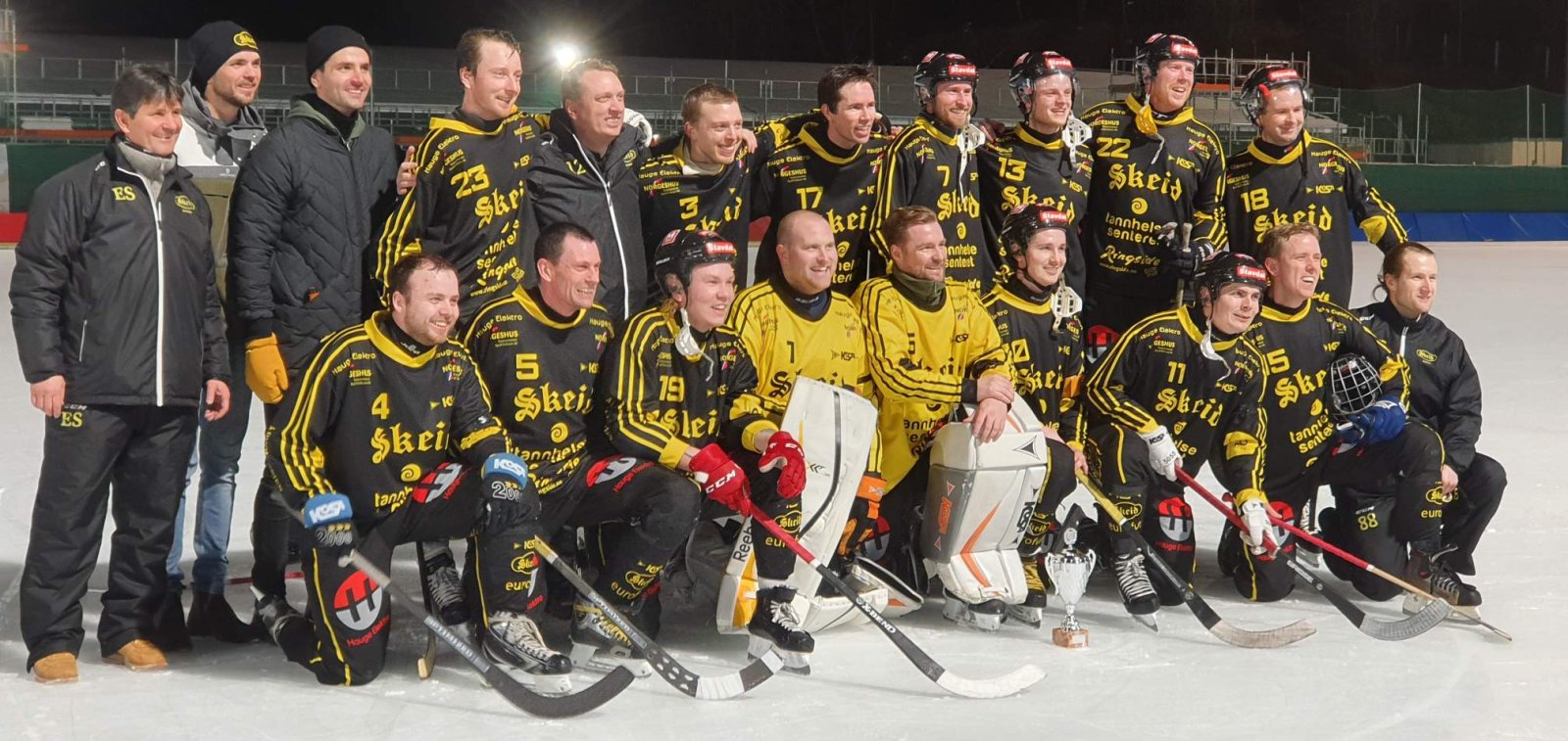 2 x Skeid, da lagets kaptein Truls Skrettingland mottok pokalen som det synlige beviset på opprykket fra Erik Hansen, som har innehatt de fleste posisjoner i Skeid. Nå er han president i Norges Bandyforbund.