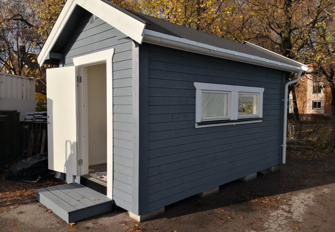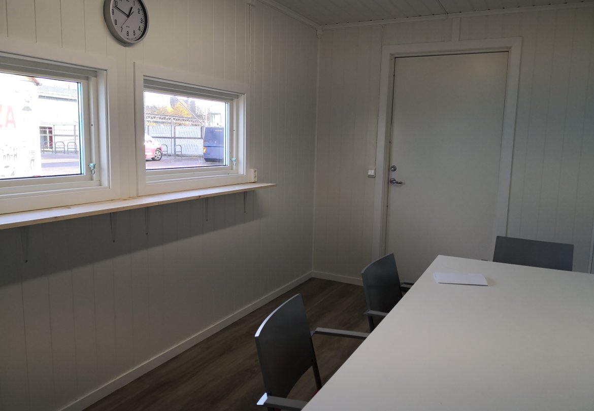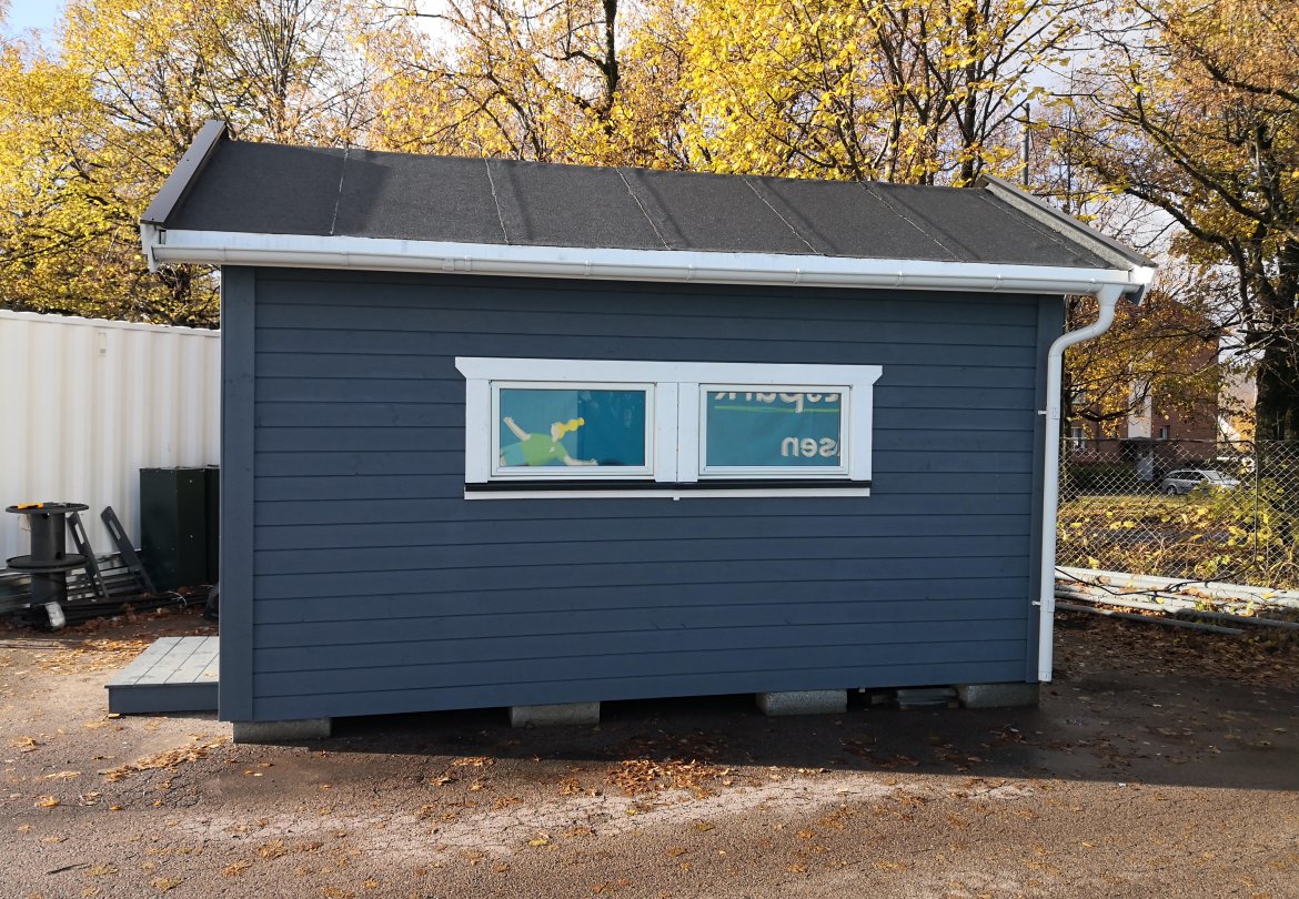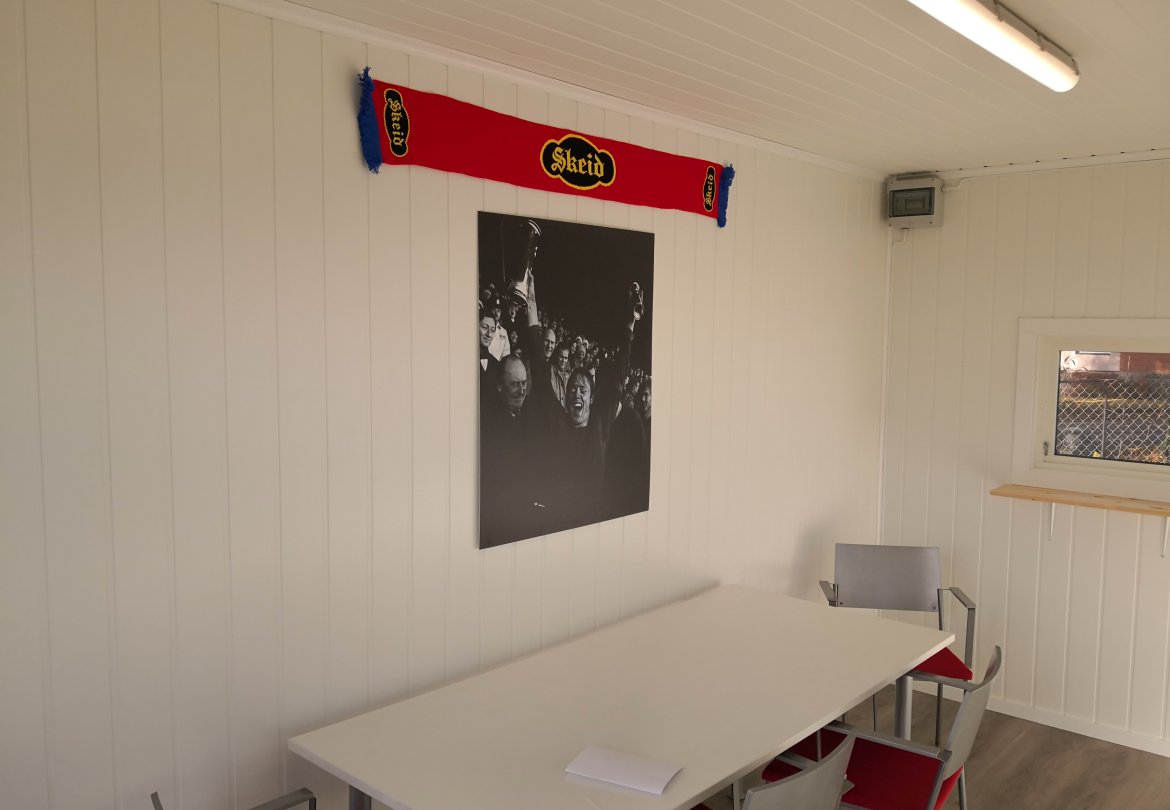 - Dugnadsgjengen har gjort en fenomenal innsats her, og det er virkelig et lite praktbygg de har fått opp. På kampdag blir dette frivilligsentralen vår, med alt av utstyr og andre behov for å serve de frivillige. Her vil det være akkrediteringspost for presse og salg av billetter når det igjen blir lov, forteller daglig leder Daniel H. Strand.