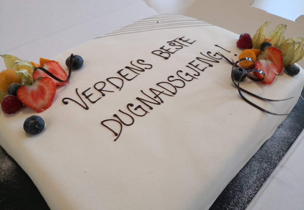 I dag har vi feiret ferdigstillingen med varmlunjs fra Strøm-Larsen og kake fra Kakeriet på klubbhuset (med strenge smittevernregler).