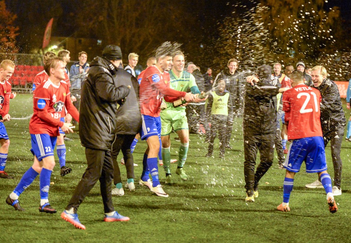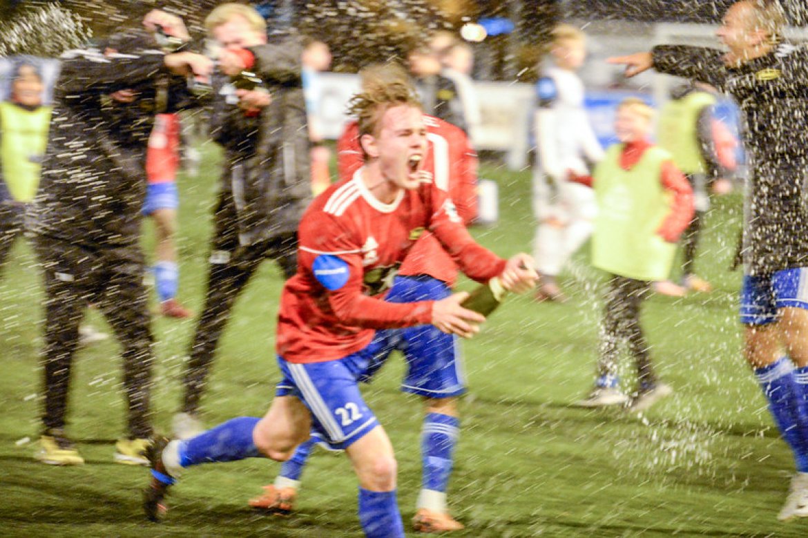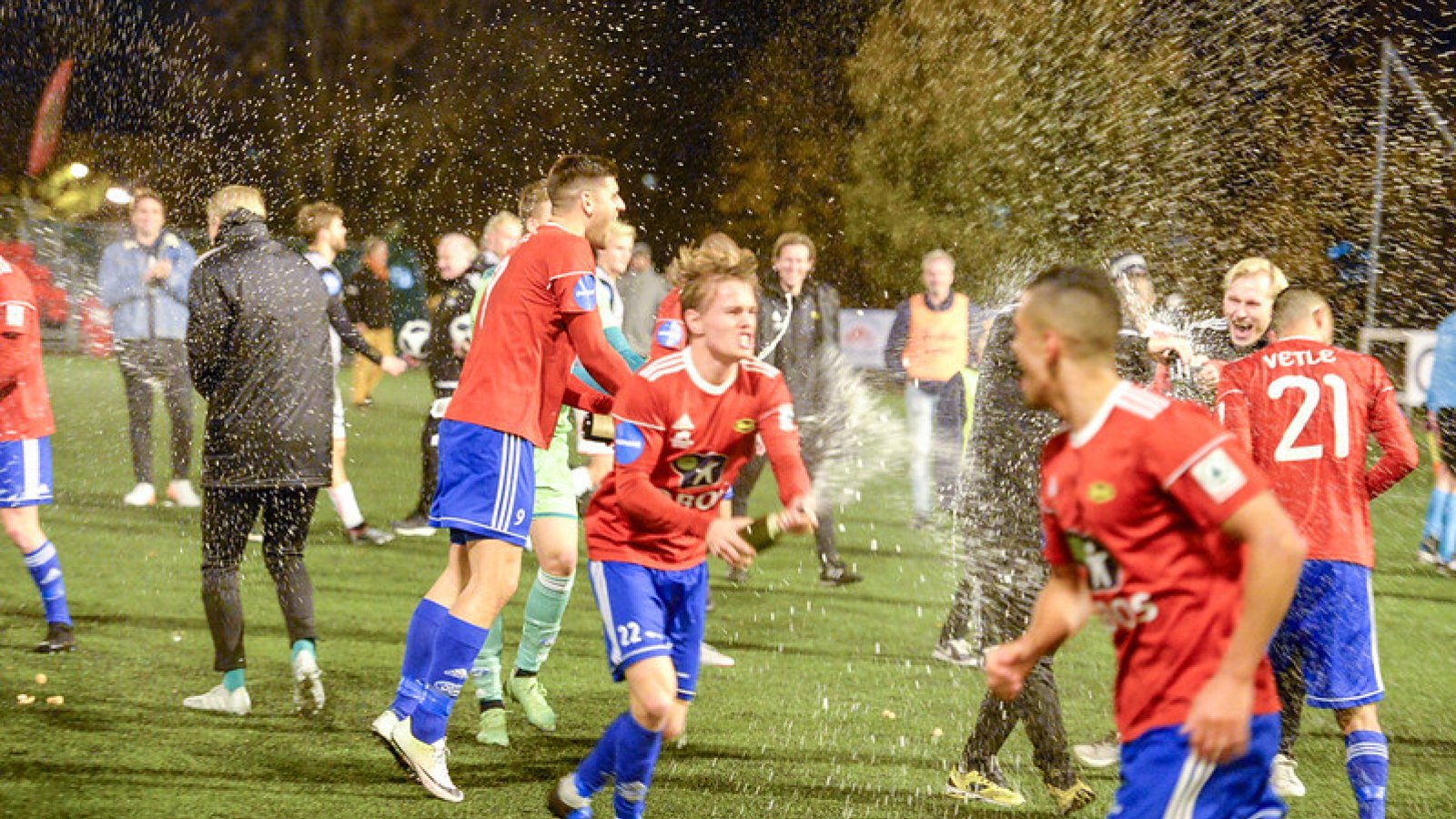 Tommelen min skyver korken sakte og jevnt av flaska. Høstkulden merkes ikke. Det er mørkt i Oslo i kveld, men på Nordre Åsen er det lys, håp og eufori i emning. Plutselig skyter korken ut av flaska. Den boblende musserende væsken søker mot den åpne flaskeåpningen i en vill fart. En vulkansk reaksjon skjer både meg og boblene. Proppen er ute, korken er borte. Vi har endelig klart det. Vi har klart det sammen. Jeg legger tommelen over flaskeåpningen og lar champagnen skyte ut i oktobernatten. Uten at jeg selv legger merke til det, så løper jeg i full fart mot oksene. Adrenalinet skyter fart i årene mine. Overtenningen min og gleden min når et nytt nivå. Et nivå jeg aldri har kjent på tidligere. Jeg stormer mot okseflokken som brøler og feirer. Gjengen som alltid støtter oss gutta. Vi har gjort de glade, vi har gjort de stolte.