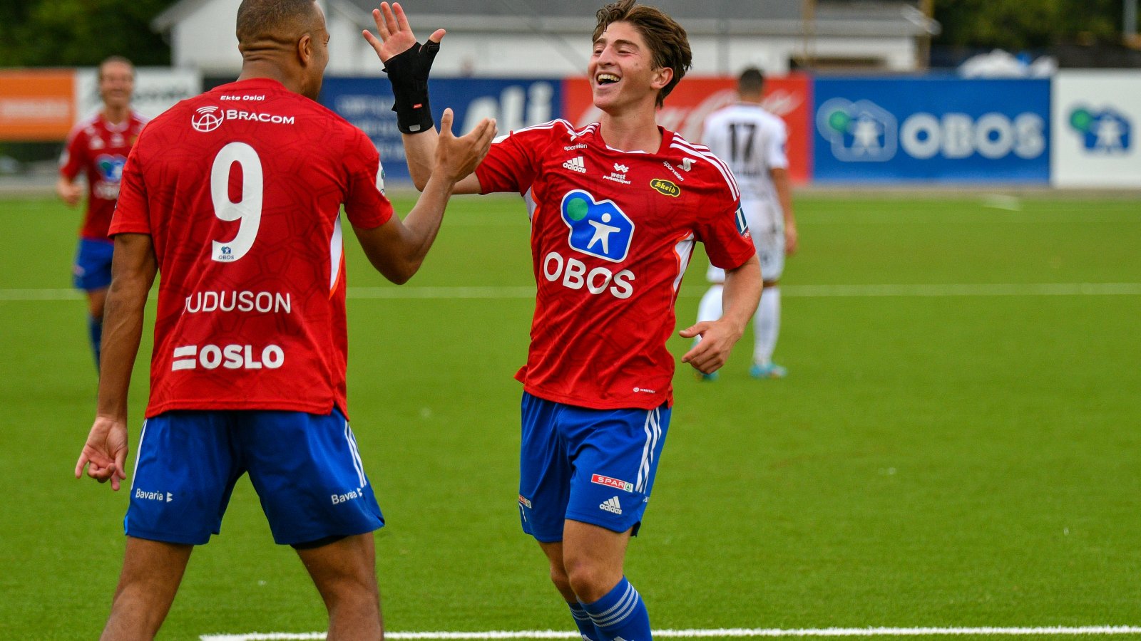 Se alle høydepunktene fra kampen her! Ulrich Ness og Marcus Melchior (som her gratuleres etter 2-0) scoret målene som ga revansj over Åsane. Video