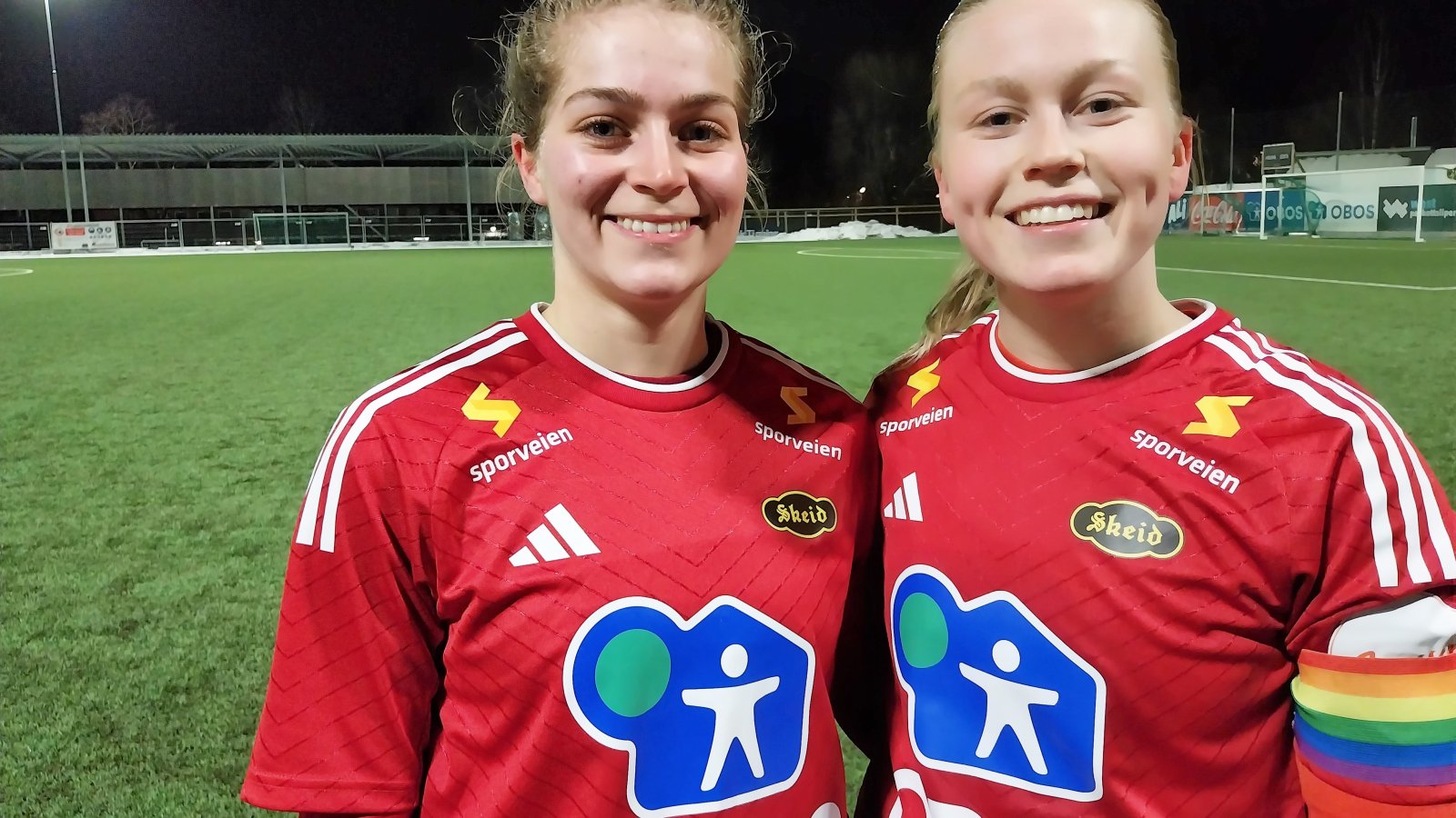 (Foto: De var barndomsvenner i Trondheim, nå spiller de sammen på Skeid. Leah van der Weel (til venstre) og dagens kaptein Anna Balstad Vågen. Foto: Anders Høilund)