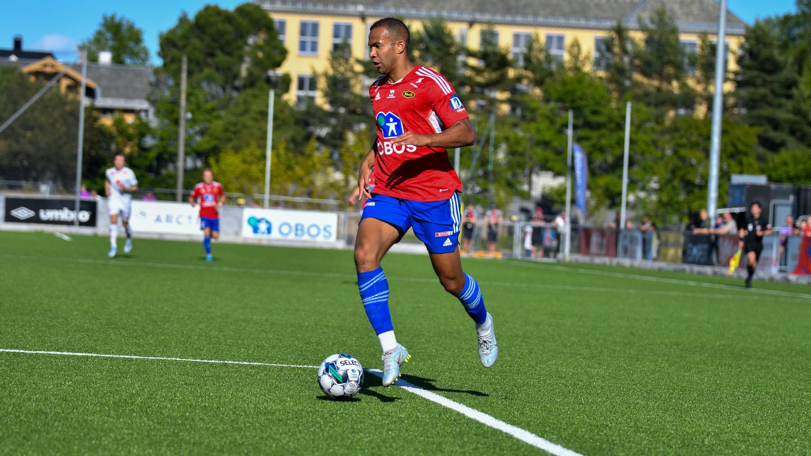 Vi åpner frisk og presser Åsane høyt. Begge lag skaper flere farligheter foran målene og en tidlig scoring ligger i lufta. Og det er Skeid-gutta som skal få nettkjenning først. Nitten minutter ut i kampen ser Kaptein Fredrik Berglie sitt snitt til å gå fremover i banen. Han spiller vegg med en medspiller og plutselig er han inne i Åsanes 16-meter. Der må de klarere til en corner for å stoppe ham.