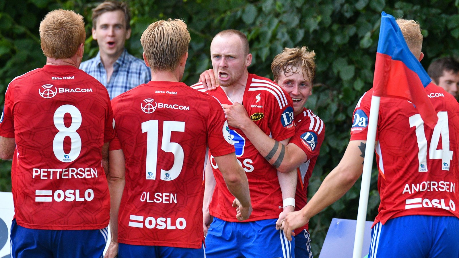 Trener Gard Holme skriker sine ordre fra trenerbenken og lagkaptein Fredrik Berglie maner sine kamerater om å våkne. Det hjelper, kampen jevner seg ut med sjanser til begge lag. Lystavla viser 90 minutter, det går mot poengdeling. Dommeren legger til fem minutter. Tiden er i ferd med å gå ut, dommeren ser på sin klokke.