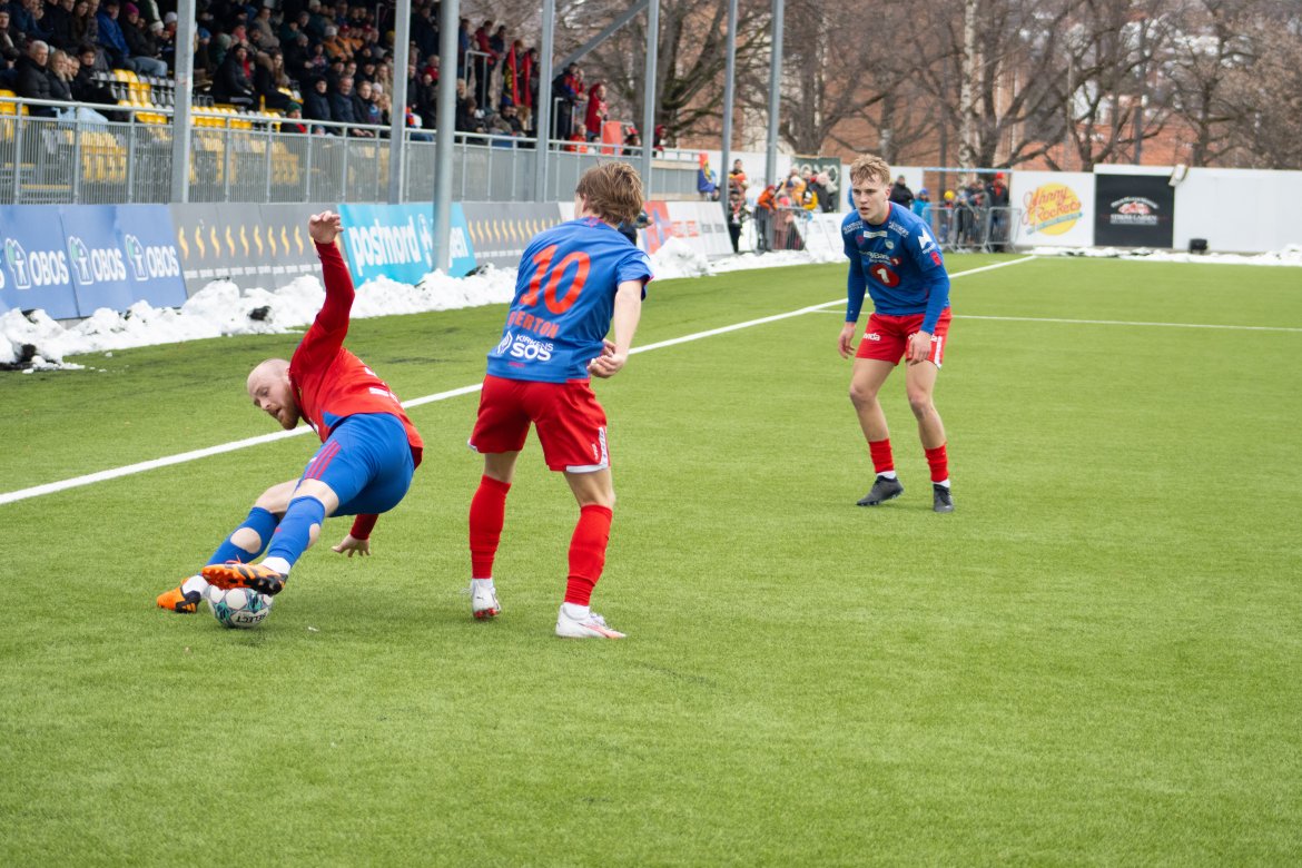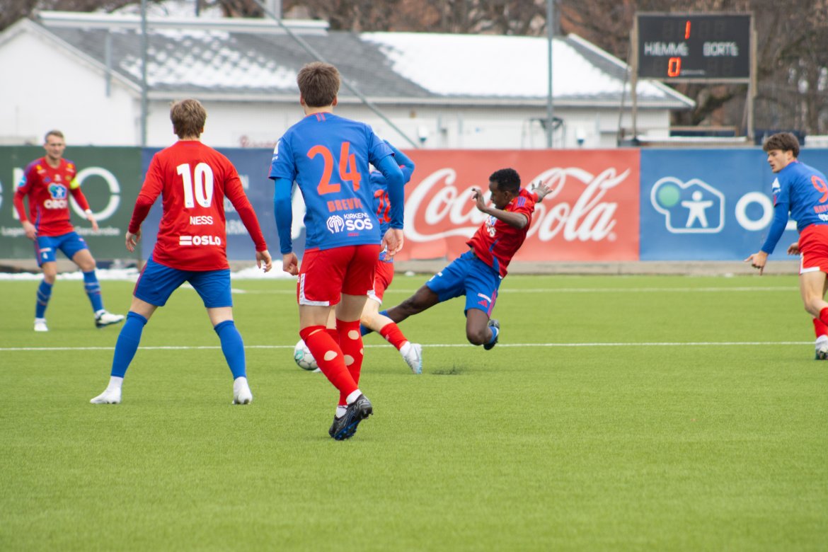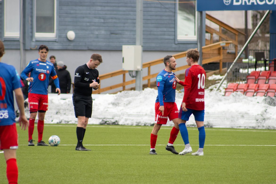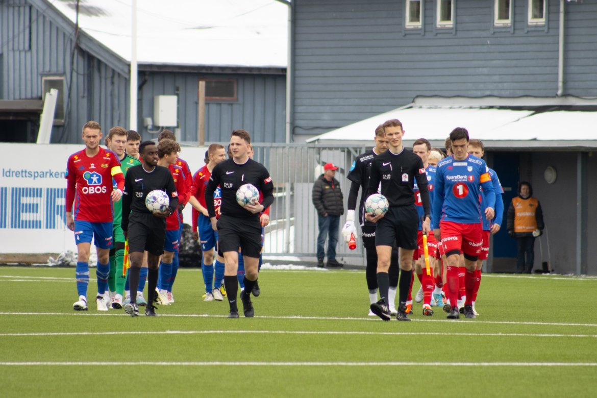 Endelig er seriestarten her! Spillerene på begge lag virker å være fulle av både det ene og det andre hormonet ettersom kampen de første minuttene er preget av mange harde taklinger og frispark.