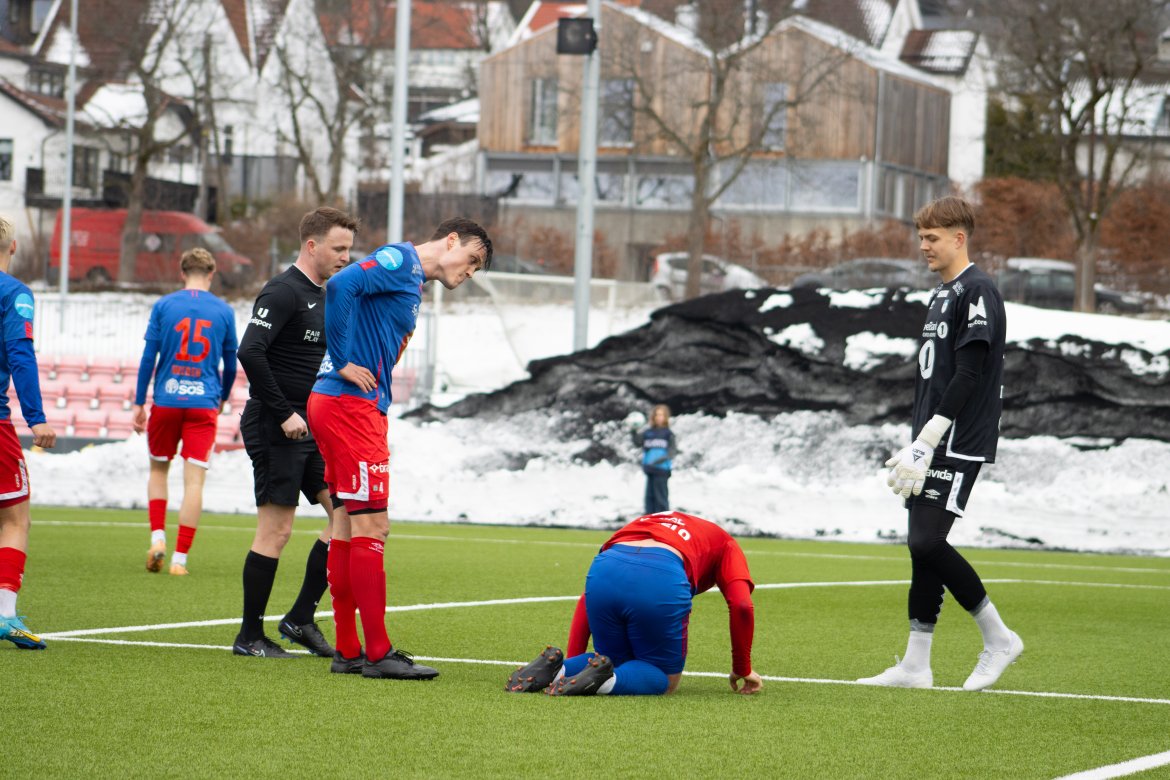 Først ved en straffesituasjon hvor TUIL-spilleren fremviser en skuespillerprestasjon Hollywood verdig og dommeren peker på 11-metersmerket, og dernest en megabrøler av vår gjennom sesongoppgjøringen meget gode og trygge keeper Marcus Andersen. Han klarerer et tilbakespill rett i kroppen på Marius Larsen, og han kan jublende spasere ballen inn og doble ledelsen.