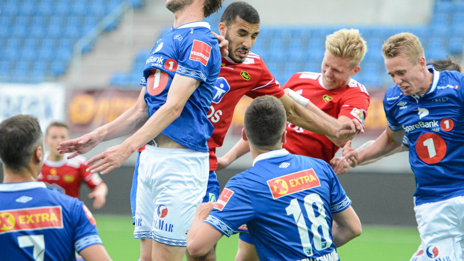 Ahmed el Amrani var synderen som skaffet Ranheim straffe. Nå tar han saken i egne føtter, forserer inn i feltet og blir felt. Men den svartkledde vifter bare spillet videre. David Tavakoli viser at han er en glimrende hodespiller, han stusser et innlegg som reddes med fingerspissene av Ranheims gode målvakt.