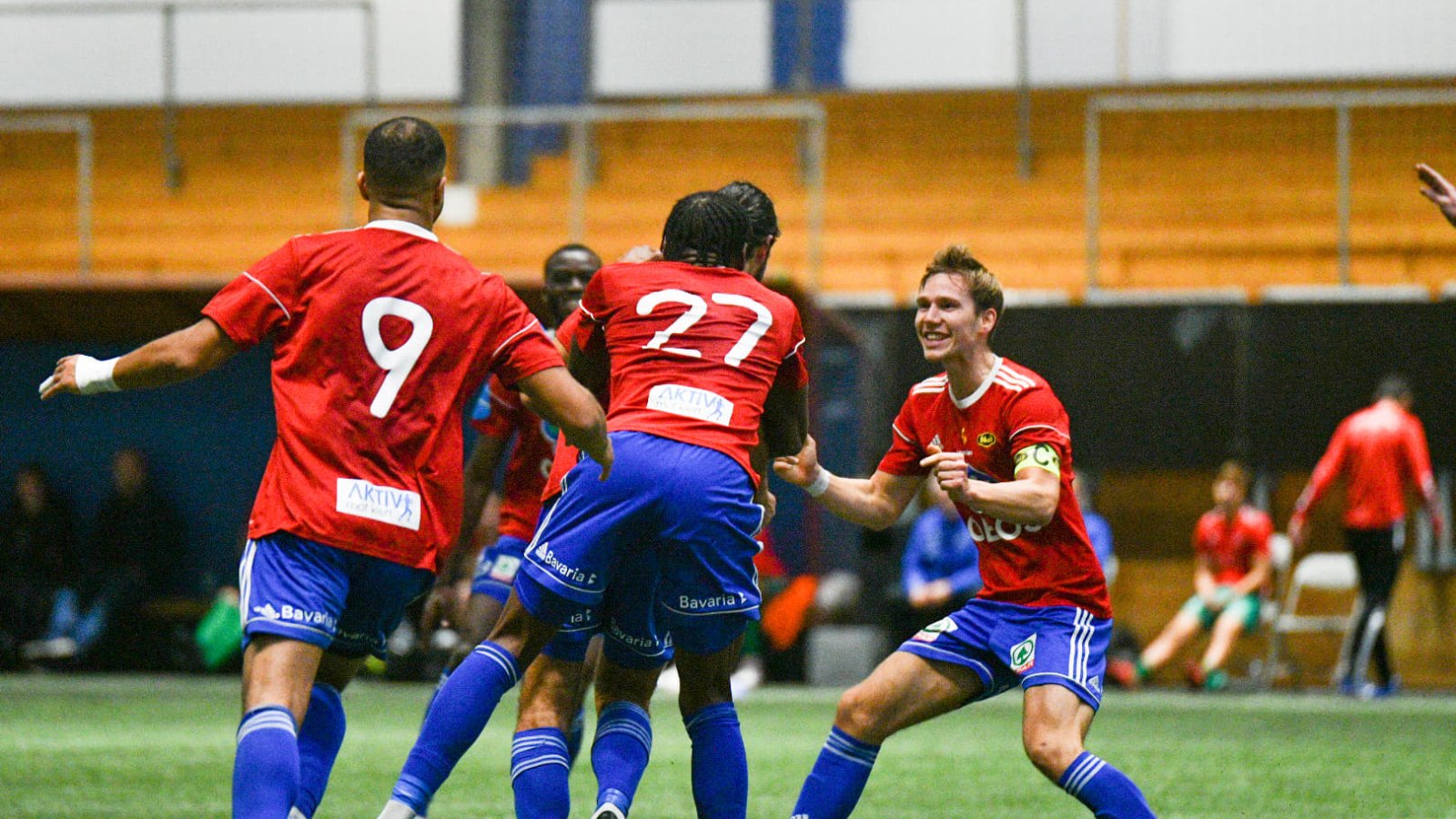 (Forsidebilde: Skeid tar ledelsen ved Hayder Altai, til glede for lagkameratene. Foto: Anders Vindegg).