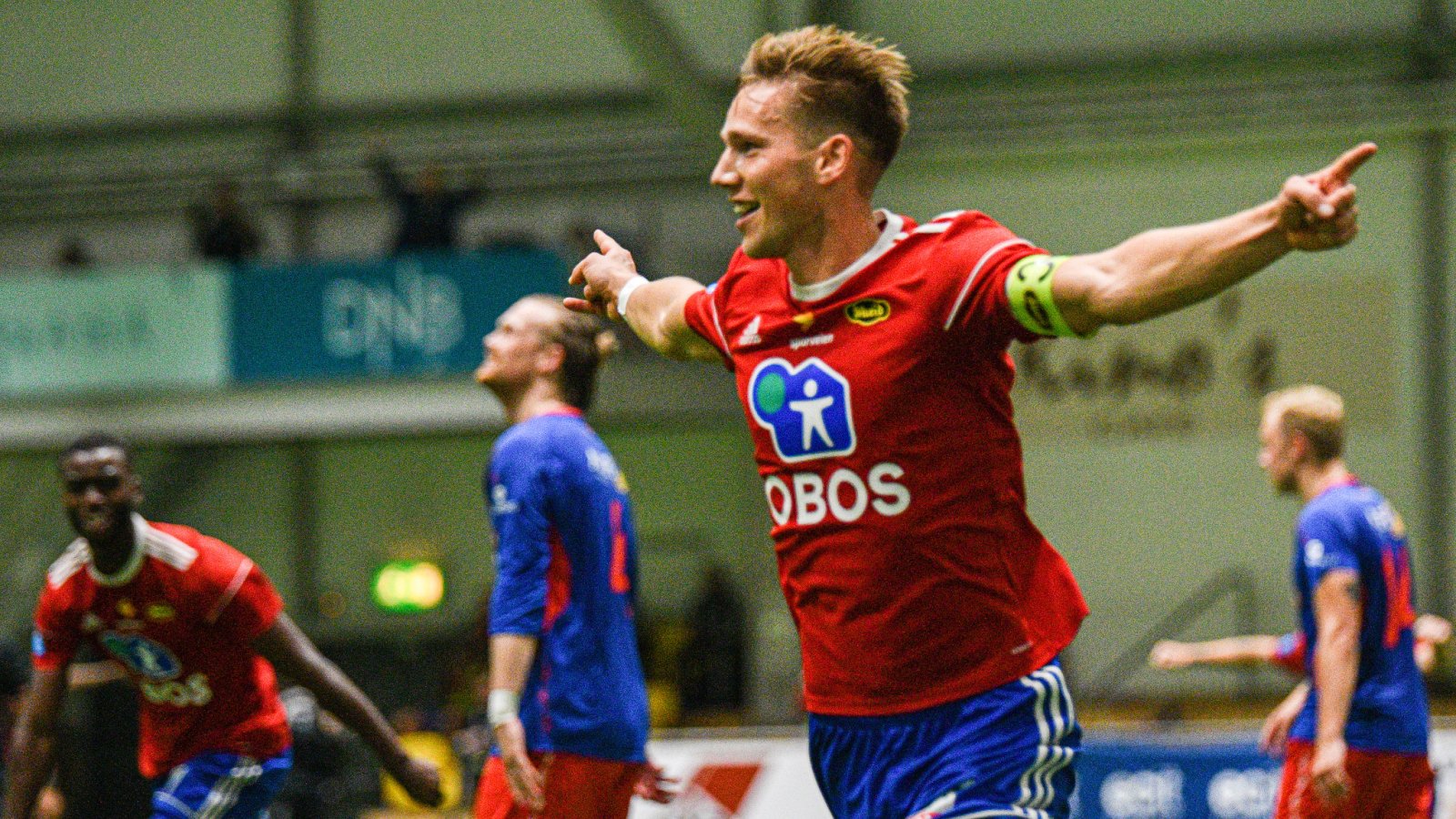 Siden Nordre Åsen ennå ikke er ferdigstilt, måtte LSK-hallen være hjemmebane da Tromsdalen UIL kom på besøk. Det ble Skeid-gutta som trakk det lengste strået og vant 3-2, men gjestene gjorde sluttminuttene ulidelig spennende. Fredrik Berglie feirer sin scoring som sendte Skeid opp i 2-0, men det er Felix Anthonessen som ble dagens mann med sin første scoring i A-lagsdrakta. Se bilder og høydepunkter her! Video