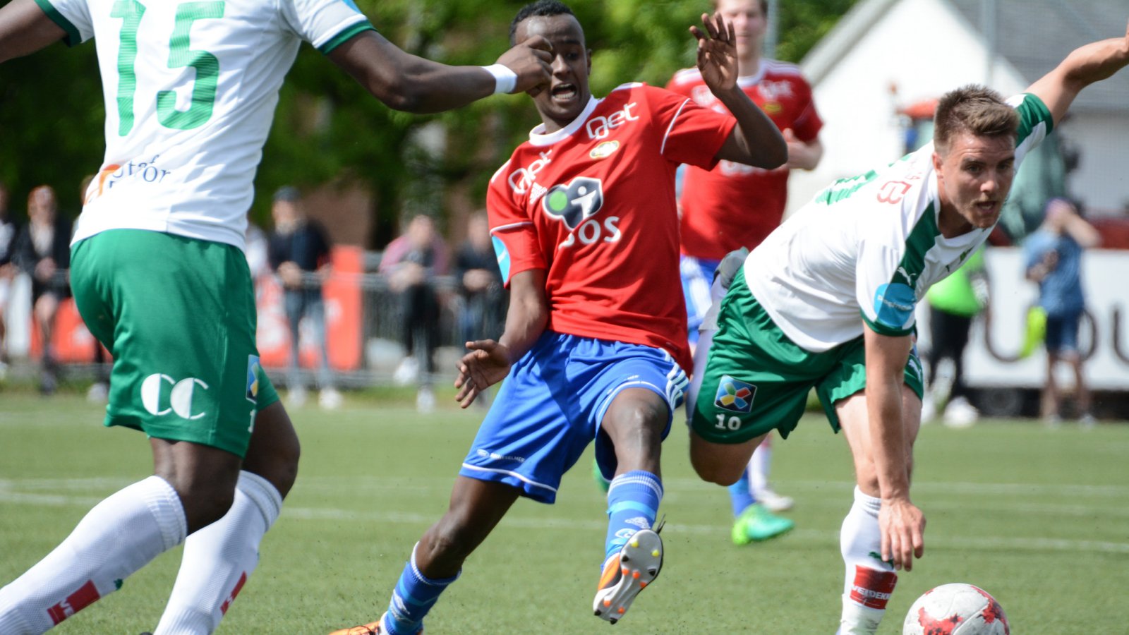 Kun minuttet er spilt når Tavakoli vinner ballen på Kammas havldel, forserer og legger inn, Kammas forsvarer får ikke klarert, men Andresens skudd blir blokkert. Stor sjanse!