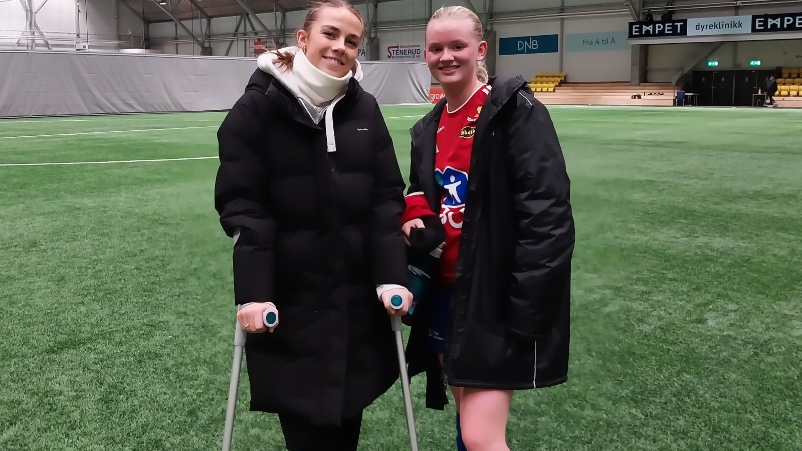 18-åringe Sunniva Bunde (til venstre) ble et nummer på statistikken over benbrudd på glattisen i Oslo, og måtte se jevngamle Selma Graarud og resten av Skeids damer fra tribunen i siste seriekamp mot LSK, som vant 1-0.