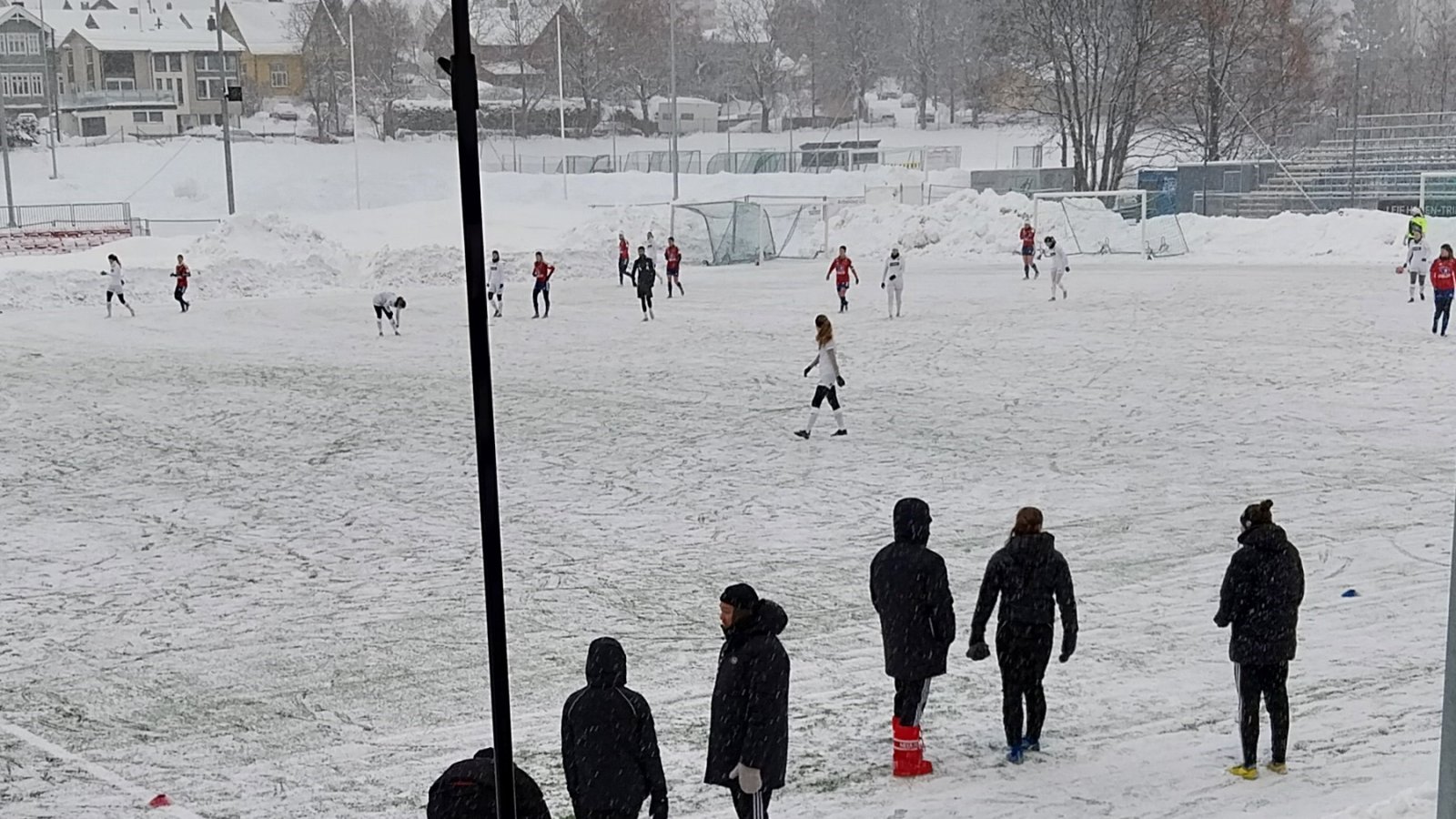 – Det var veldig gøy å spille kamp igjen, selv om forholdene var vanskelige, sa Ødegaard Aas i pausen. Hun gav seg etter første omgang. Leah van der Weel måtte ut med skade tidlig i første omgang. Hun fikk et slag mot muskulaturen i en takling som så voldsom ut på det glatte føret.