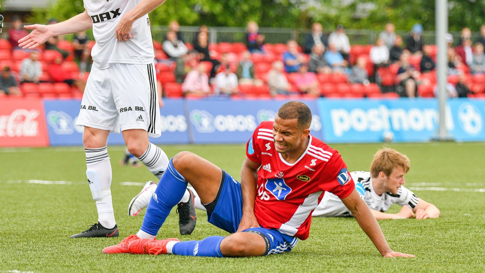 Sotra får tråklet seg gjennom Skeid-forsvaret på overtid, men Anders Gundersen får en hånd på ballen, stor sjanse! Dommeren blåser like etter for pause etter en omgang som ikke går inn i historiebøkene, men bortelaget har hatt ballen mest samt de fleste sjansene, og burde ledet kampen.