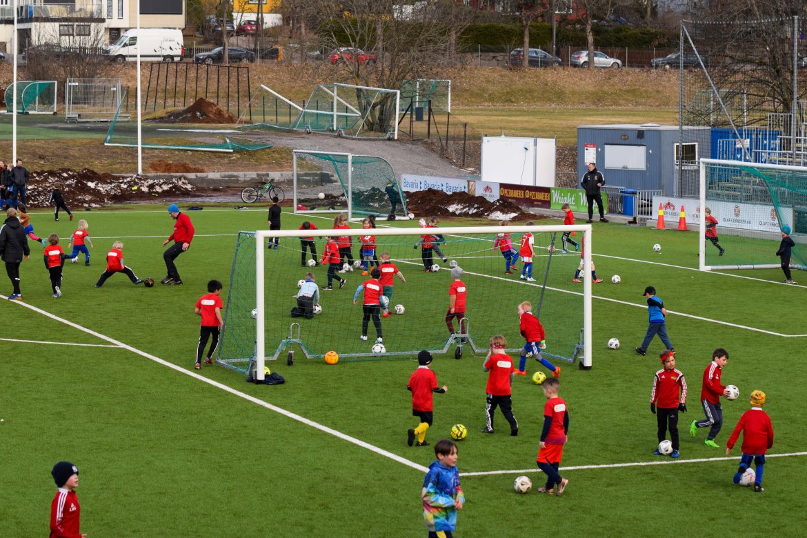 I går var årets første Velkommen Til Fotball-onsdag, og godt over hundre ivrige små gutter og jenter var samlet til fotballtrening. Vi har tjuvstartet og er i gang allerede i april, og økta ble avholdt på Nordre Åsen 1, med tribunebygging som kulisse.