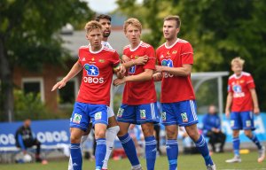 Skeid slår nyopprykkede Fløya 6-0 i Tromsø søndag ettermiddag, her er høydepunktene! Marius Brinck Rygel (i midten) scoret to i målfesten.