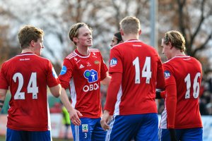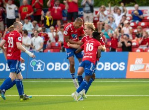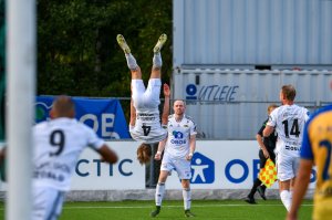 Se alle høydepunktene fra kampen her! Ulrich Ness og Marcus Melchior (som her gratuleres etter 2-0) scoret målene som ga revansj over Åsane.
