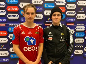 Vi tar ledelsen to ganger i treningskampen mot Raufoss, men det ender 2-2. Ulrich Ness (t.h.) og Emil Tjøstheim (t.v.) scorer våre mål. Les guttas kommentarer i saken, og se Gard Holmes oppsummering!