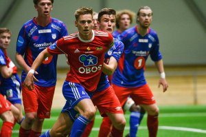 Siden Nordre Åsen ennå ikke er ferdigstilt, måtte LSK-hallen være hjemmebane da Tromsdalen UIL kom på besøk. Det ble Skeid-gutta som trakk det lengste strået og vant 3-2, men gjestene gjorde sluttminuttene ulidelig spennende. Fredrik Berglie feirer sin scoring som sendte Skeid opp i 2-0, men det er Felix Anthonessen som ble dagens mann med sin første scoring i A-lagsdrakta. Se bilder og høydepunkter her!